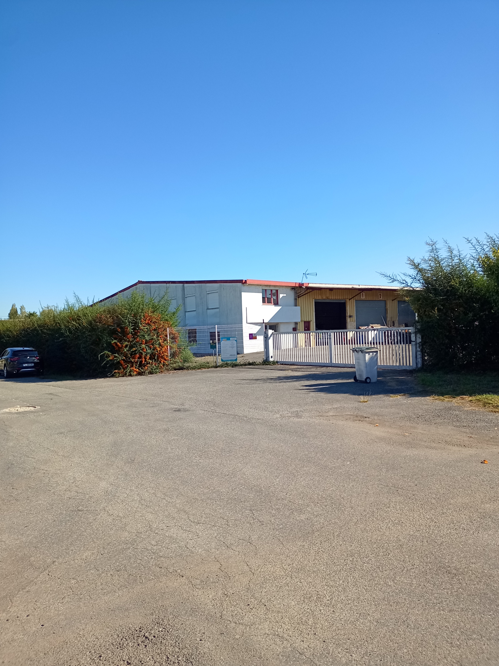 - A gauche de la façade : deux cellules de 500 m² avec un espace bureaux d’environ 250 m² sur un foncier de 8 000 m² au total (y compris l’emprise du bâtiment).