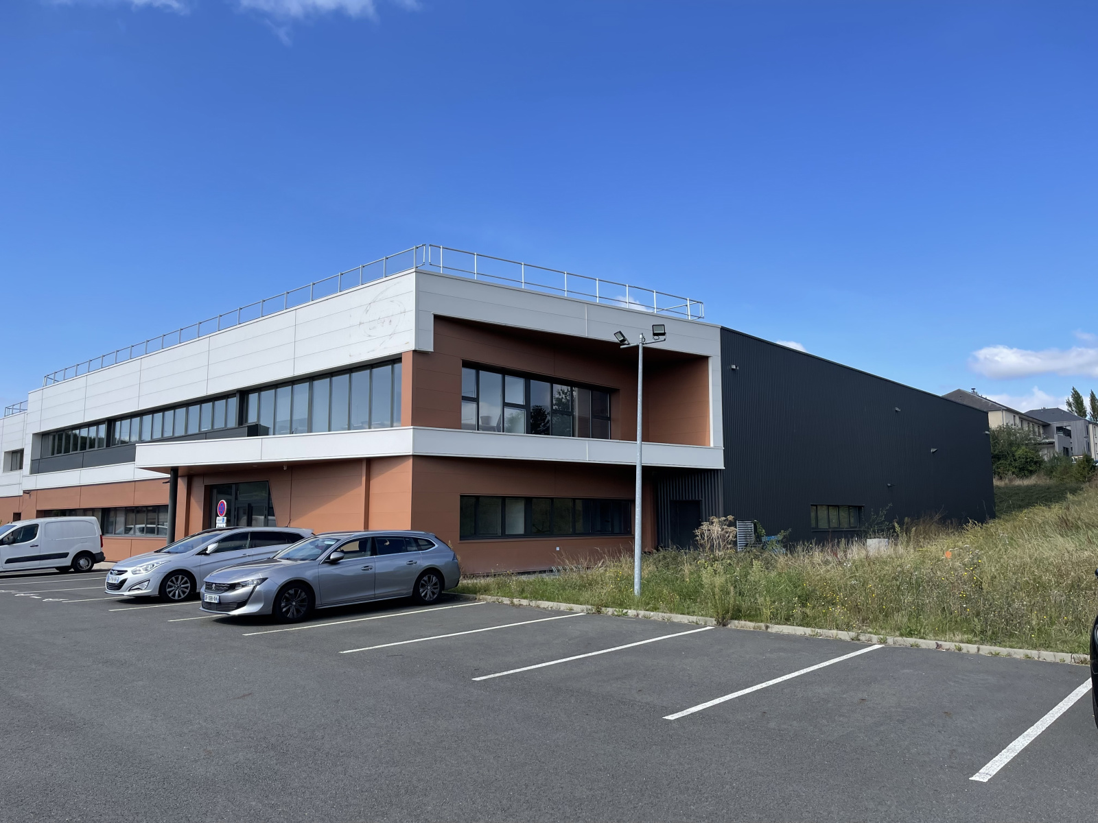 Ce bâtiment comprend un atelier d'une surface de 1 333 m², une zone de stockage de 640 m², des locaux techniques de 327 m², des bureaux en RDC de 428 m² et en R+1 de 408 m², un auvent de 172 m², 60 places de stationnement à disposition,