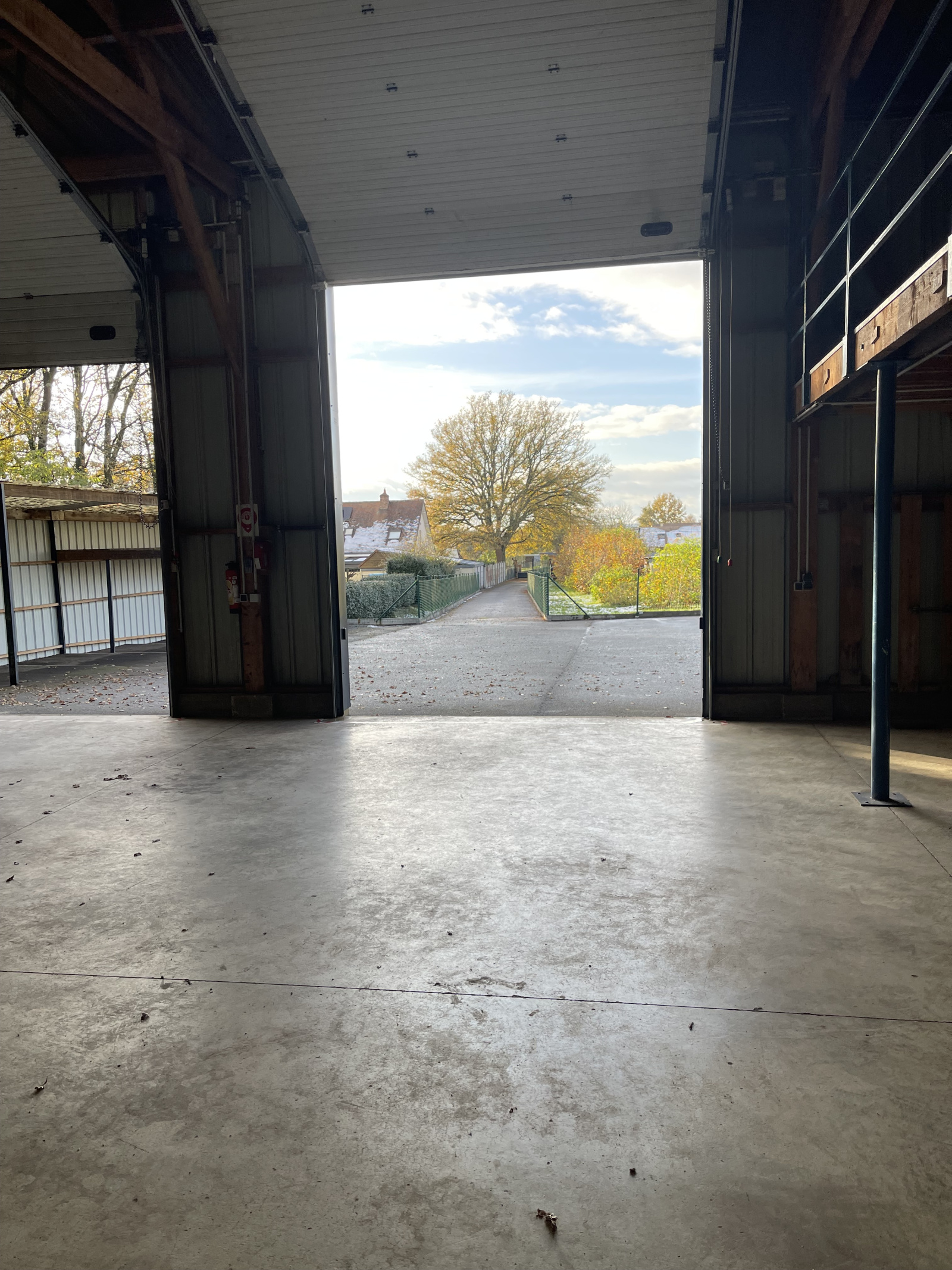 Deux portes sectionnelles hauteur 4 m, un grand parking clos et sécurisé.